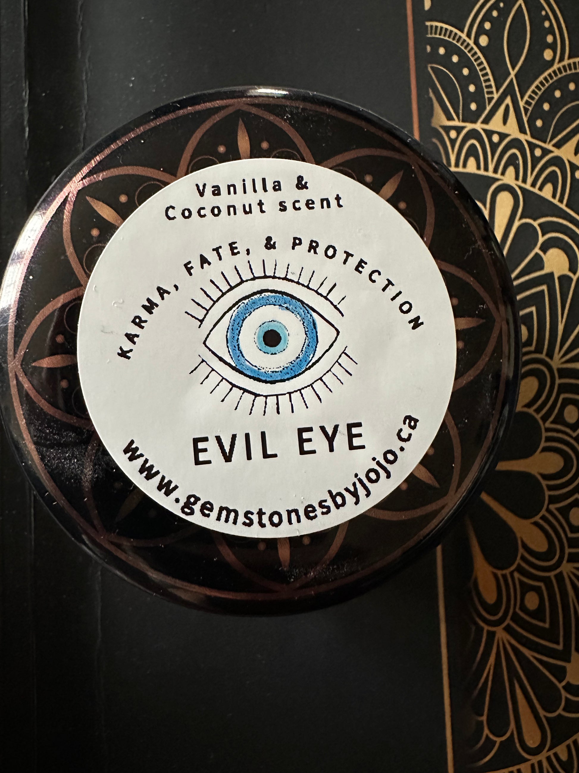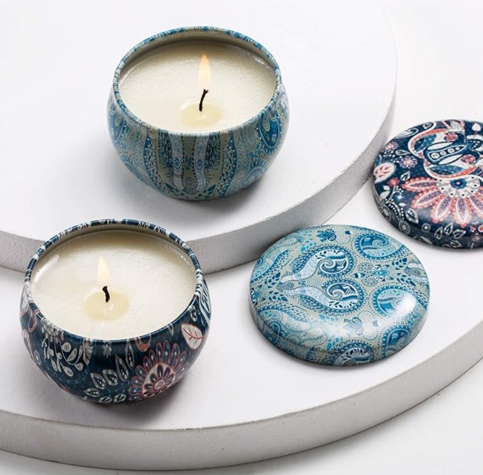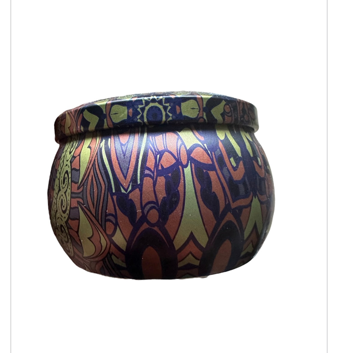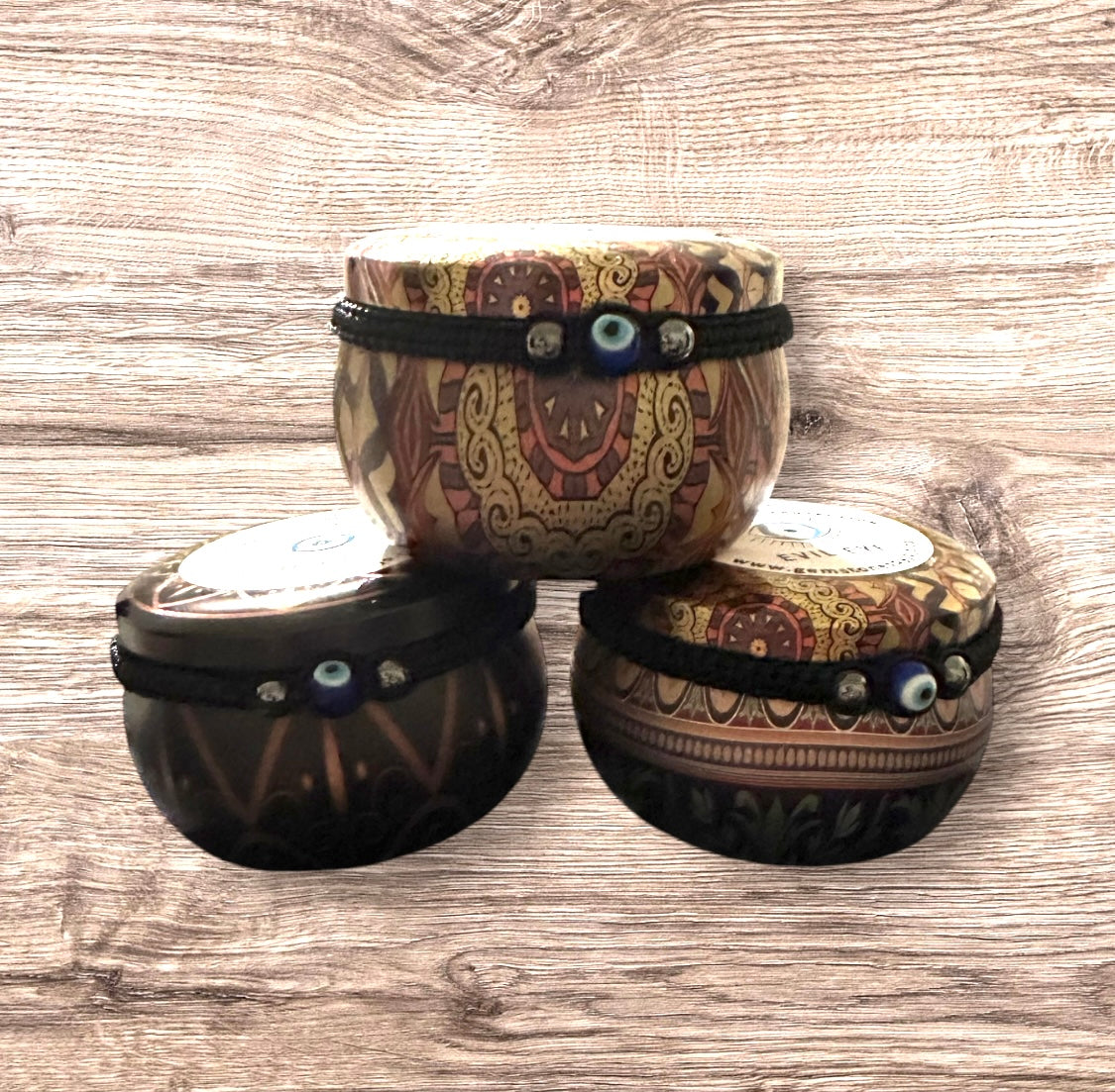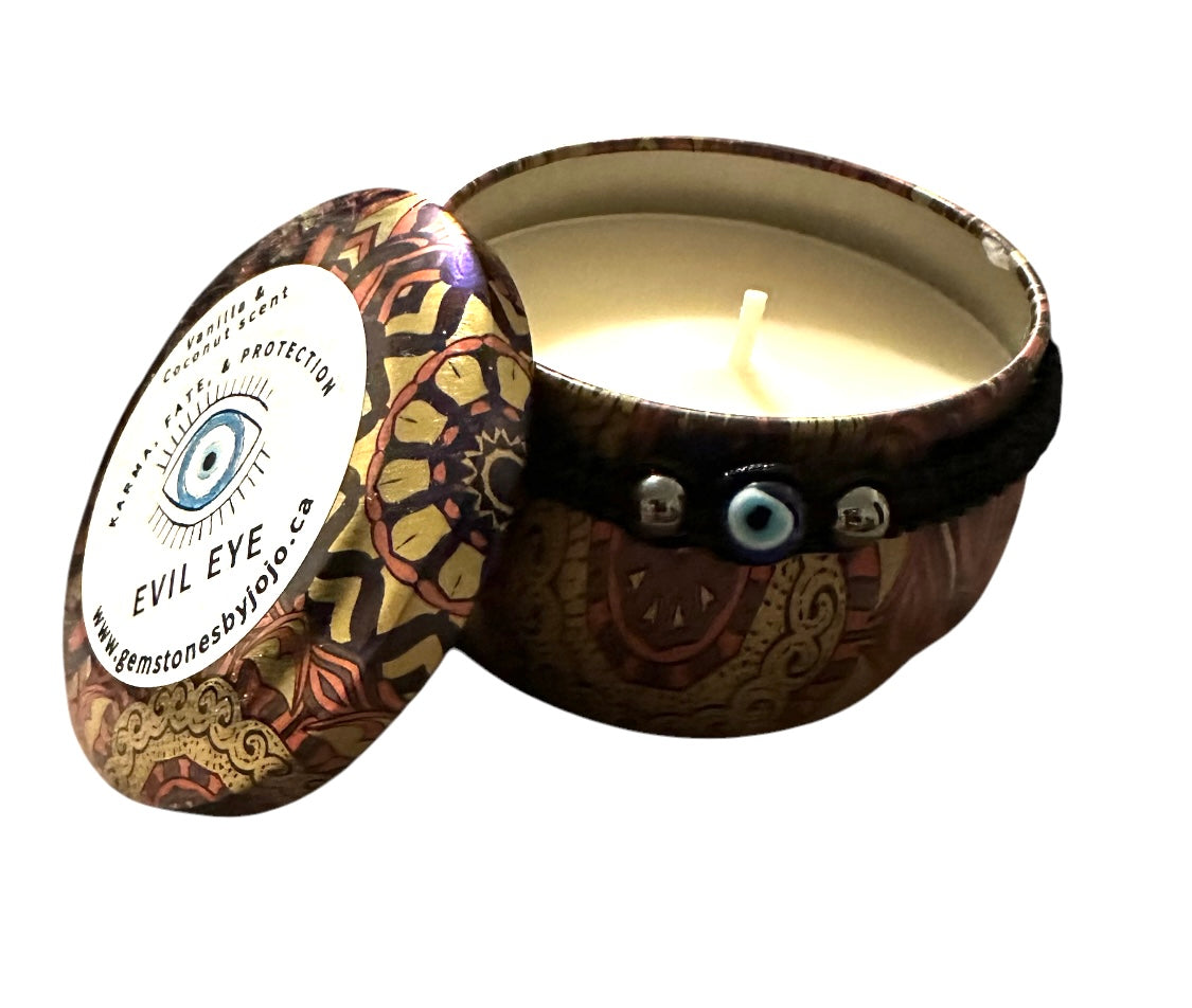 (1) 4 oz Soy wax candles in fancy tin are made with a coconut and vanilla scent. (plain no crystals but I can add some for an extra charge so please message us.)