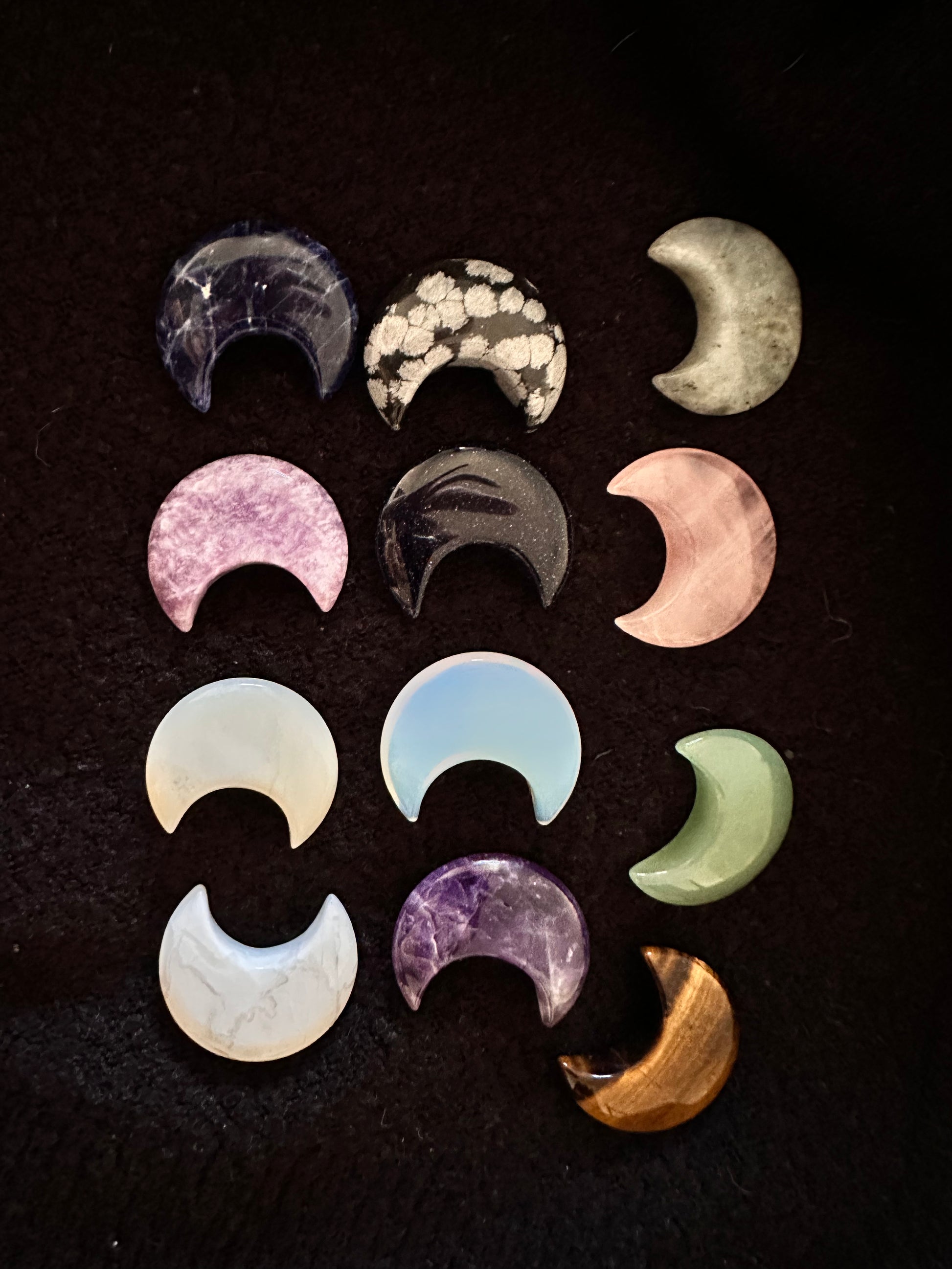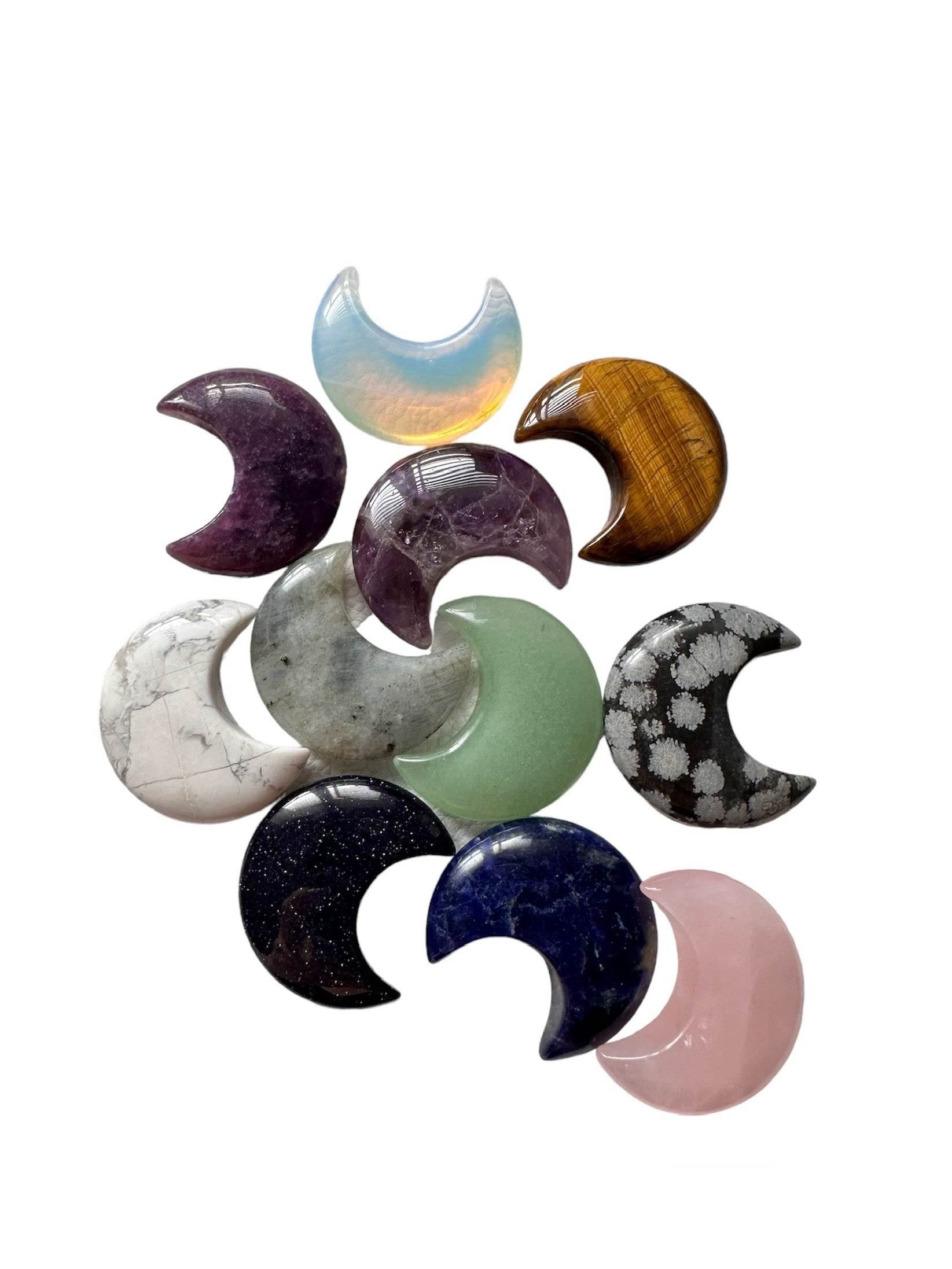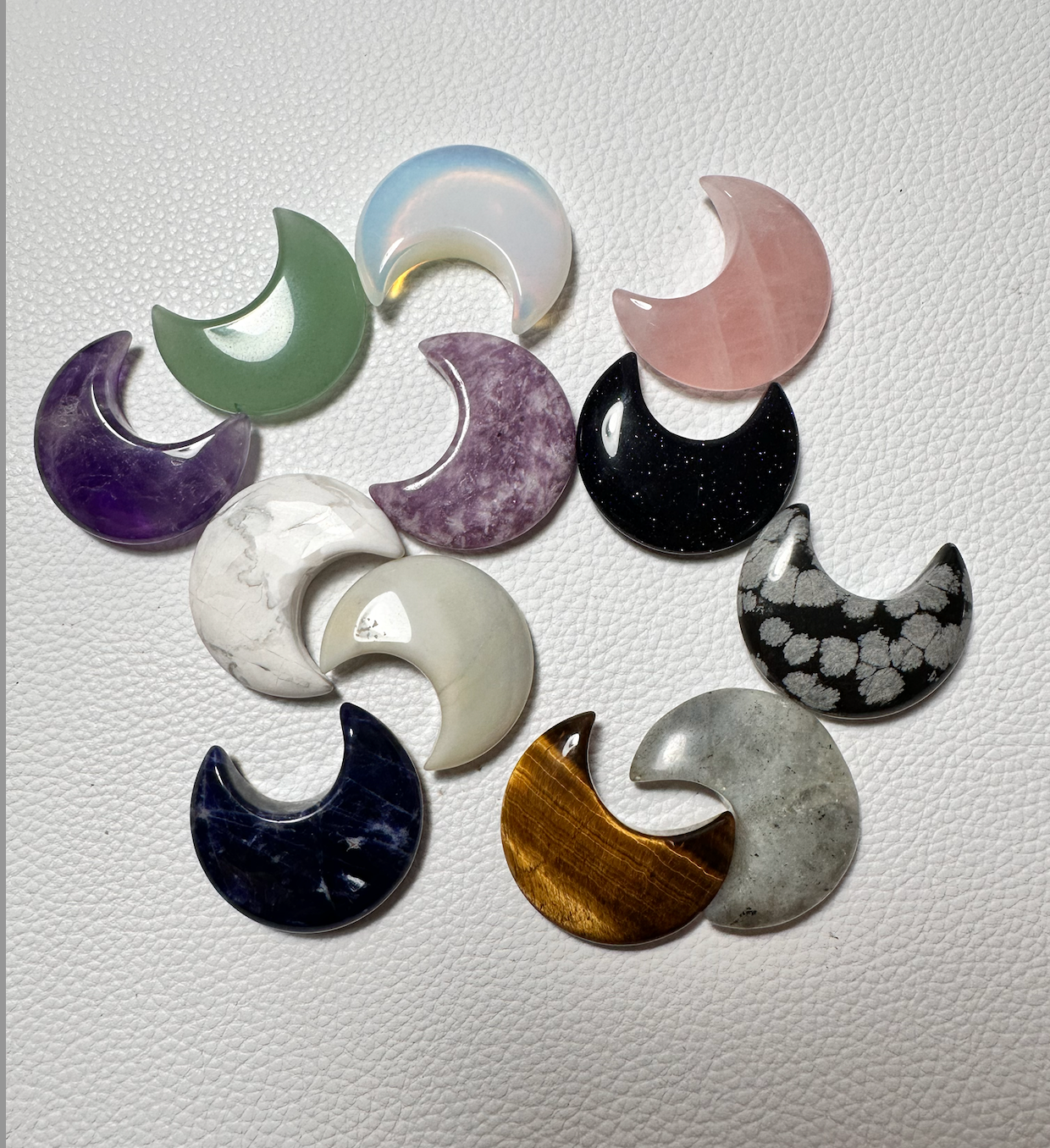 We have a beautiful collection of crystal moon carvings. Each one is unique and hand-carved with great attention to detail. These carvings are perfect for those who love the moon and its energy. They make great additions to any crystal collection or as a gift for someone special.