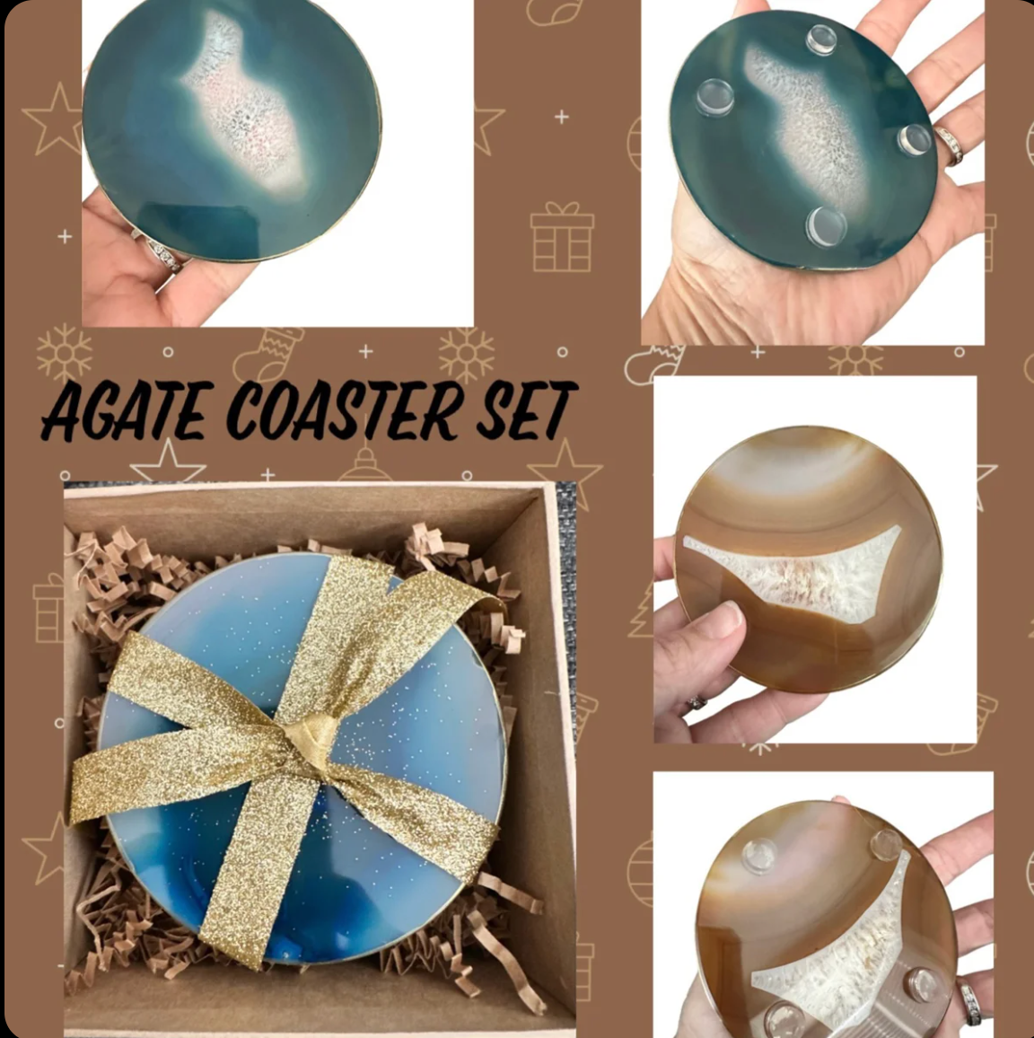 You will receive (1) Blue Agate Slice and (1) Brown Agate Slice.
