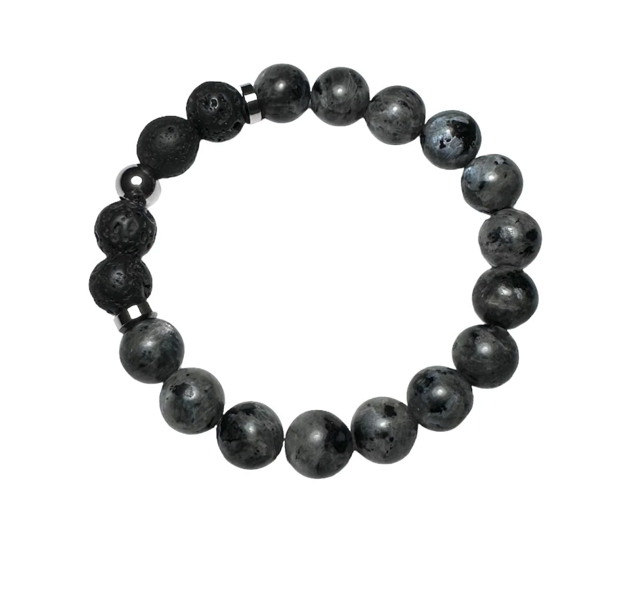 Black Labradorite and Lava Rock with a stainless steel charm size 7.5.