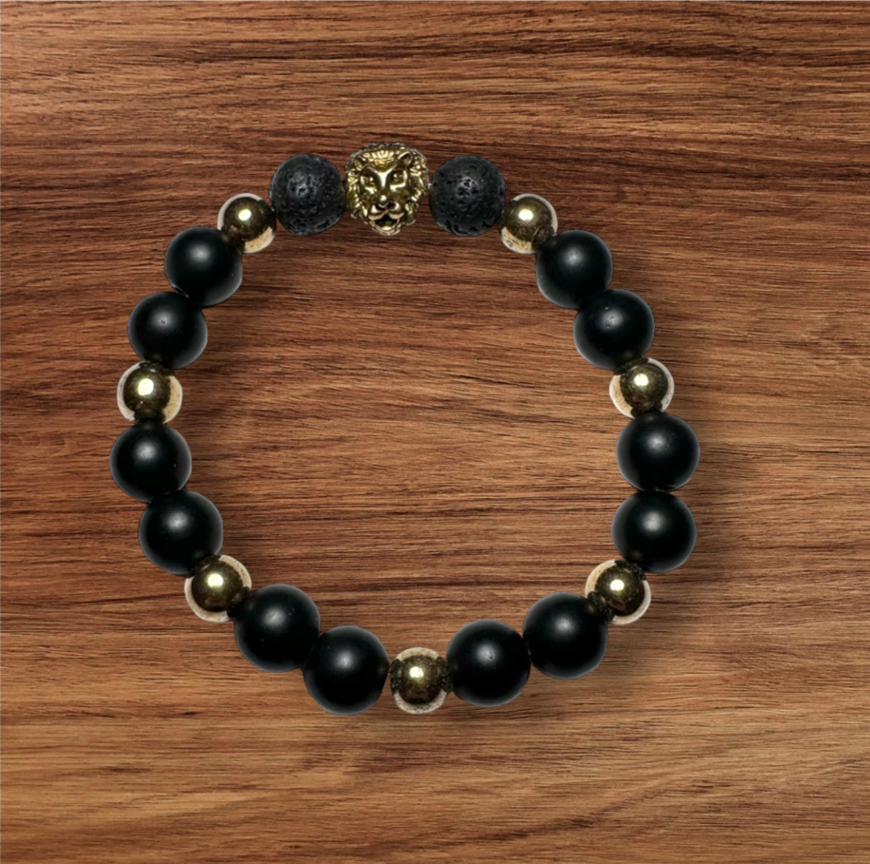 Black Onyx, Hematite, and Lava Rock gemstone bracelet.