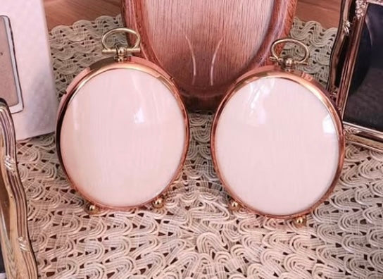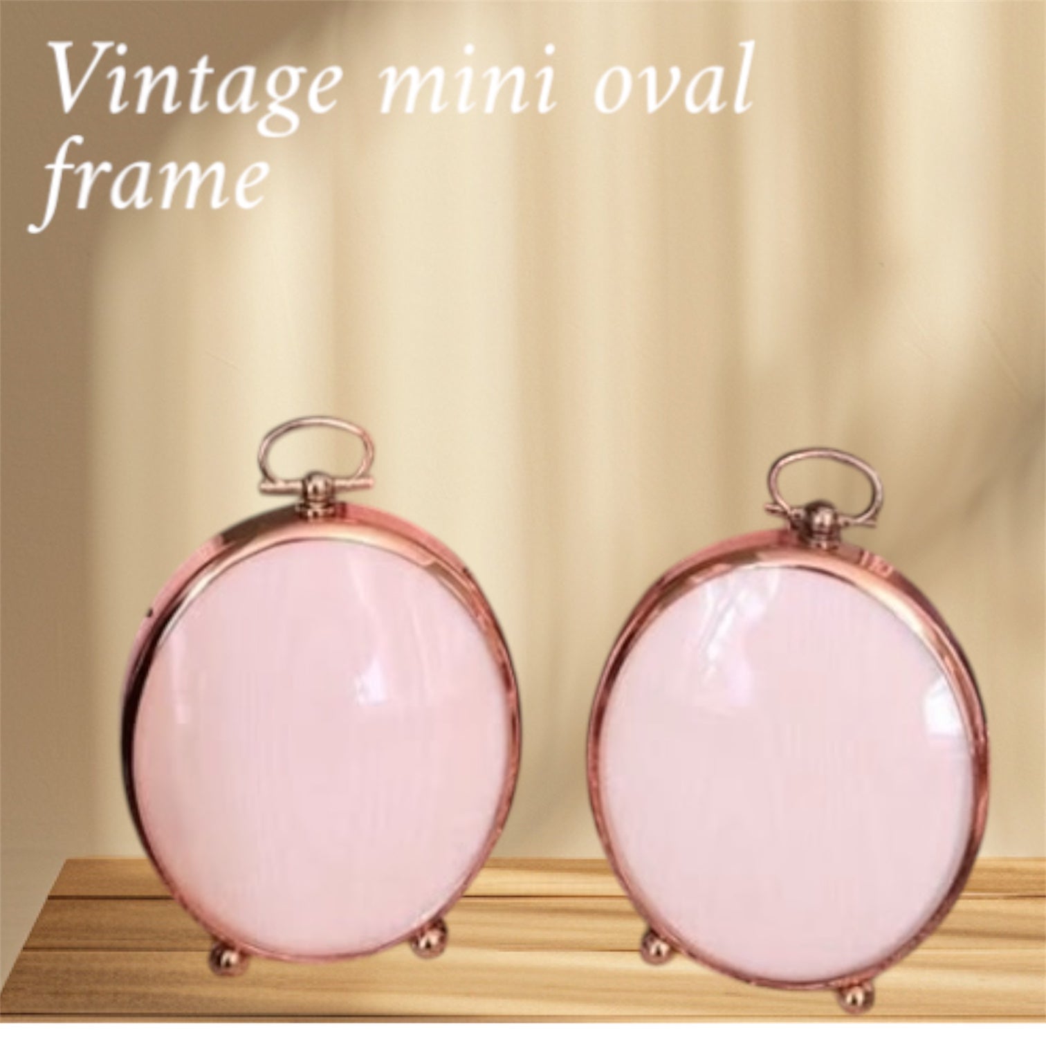 Miniature Brass and Copper Oval Picture Frame with Ball Feet and Bubble Glass.