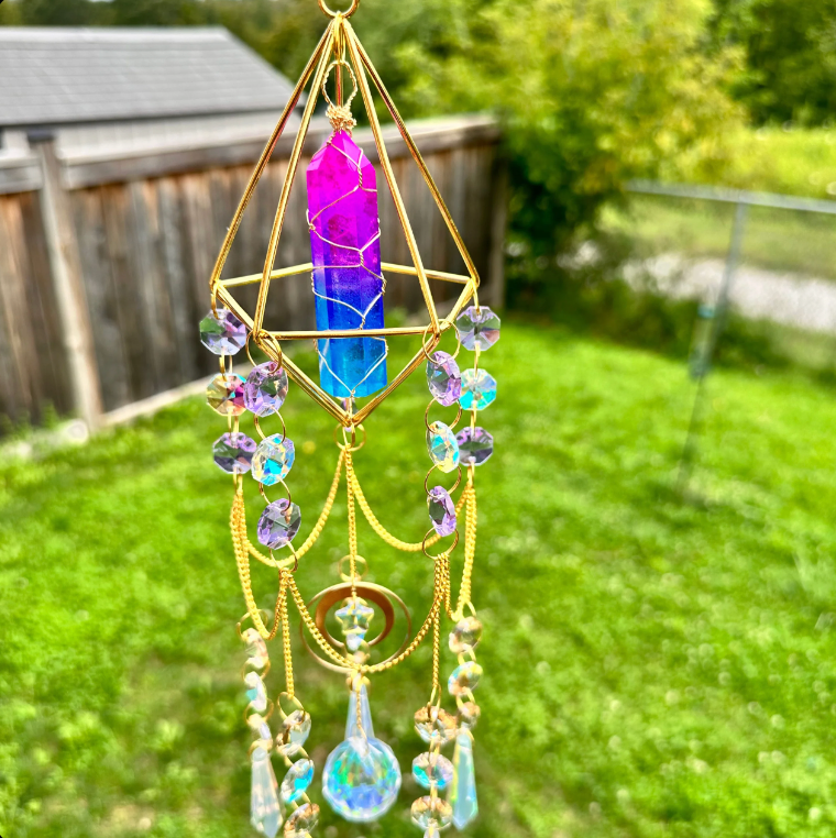 Cotton candy Quartz tower aka Natural Aura Clear Quartz Purple and Blue Crystal Point Electroplating Tower.