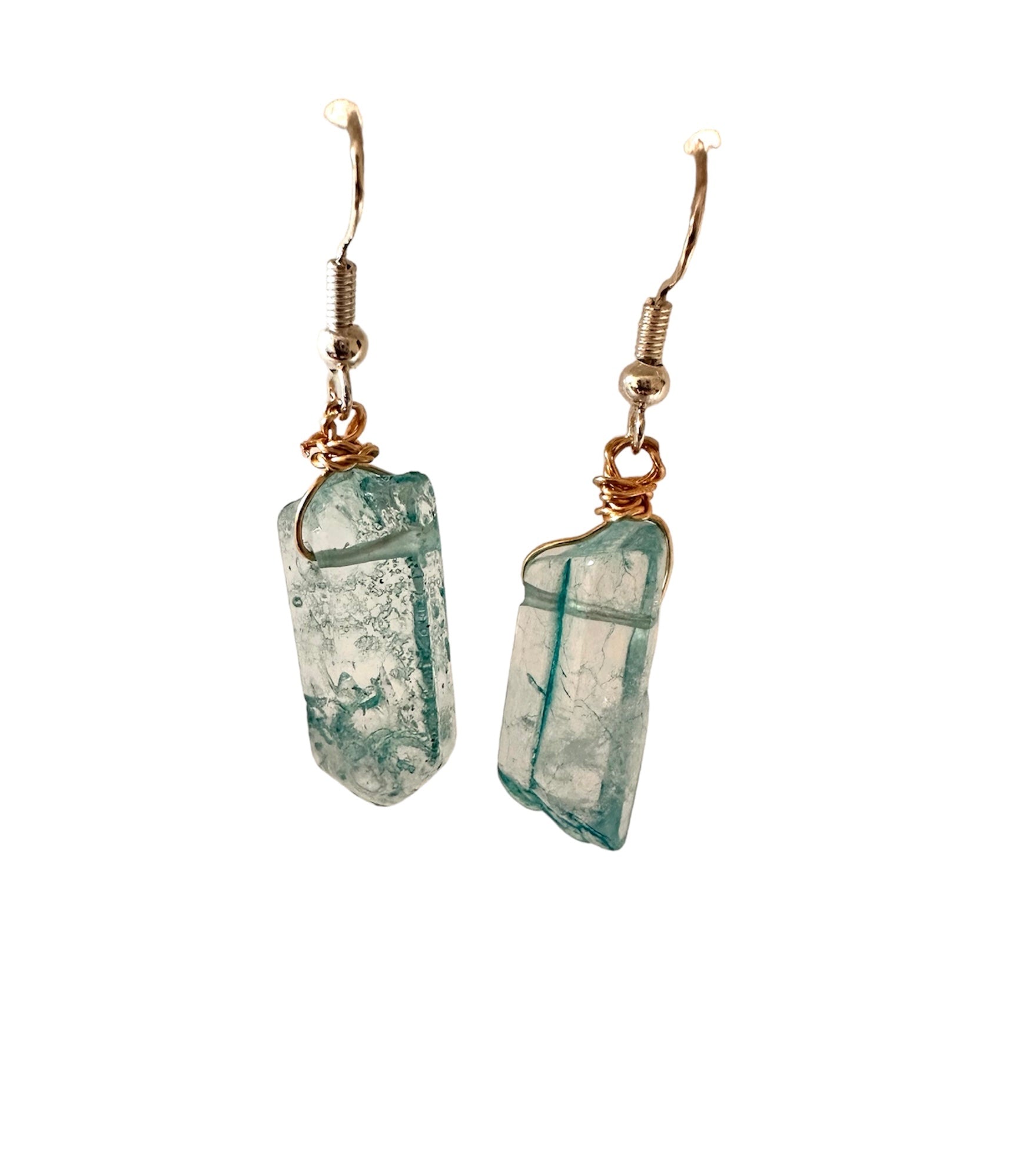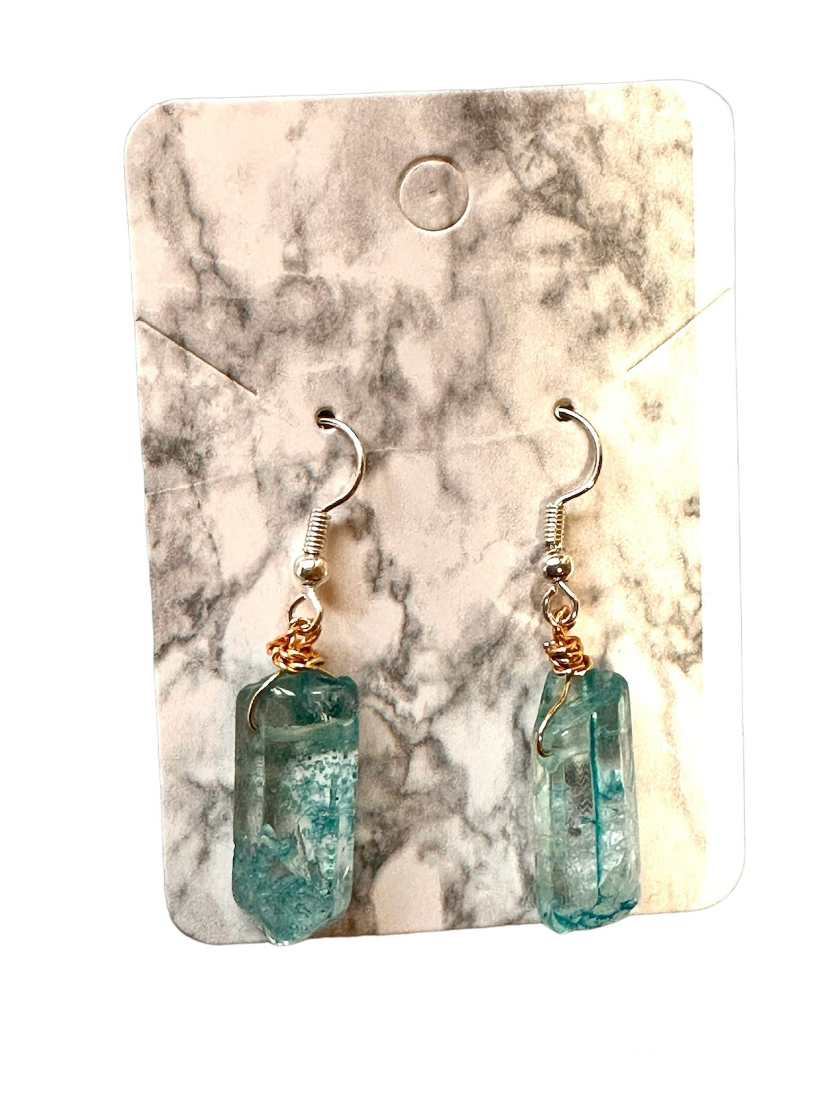 Handmade Blue Dyed Quartz crystal earrings