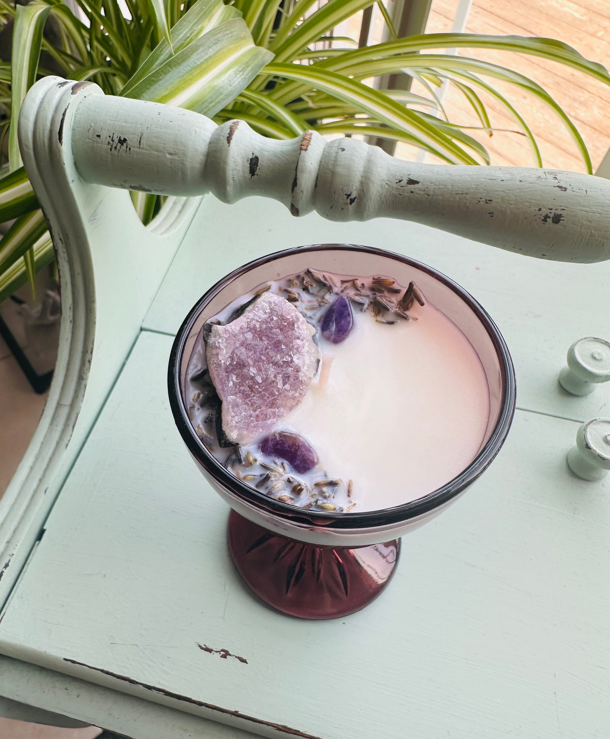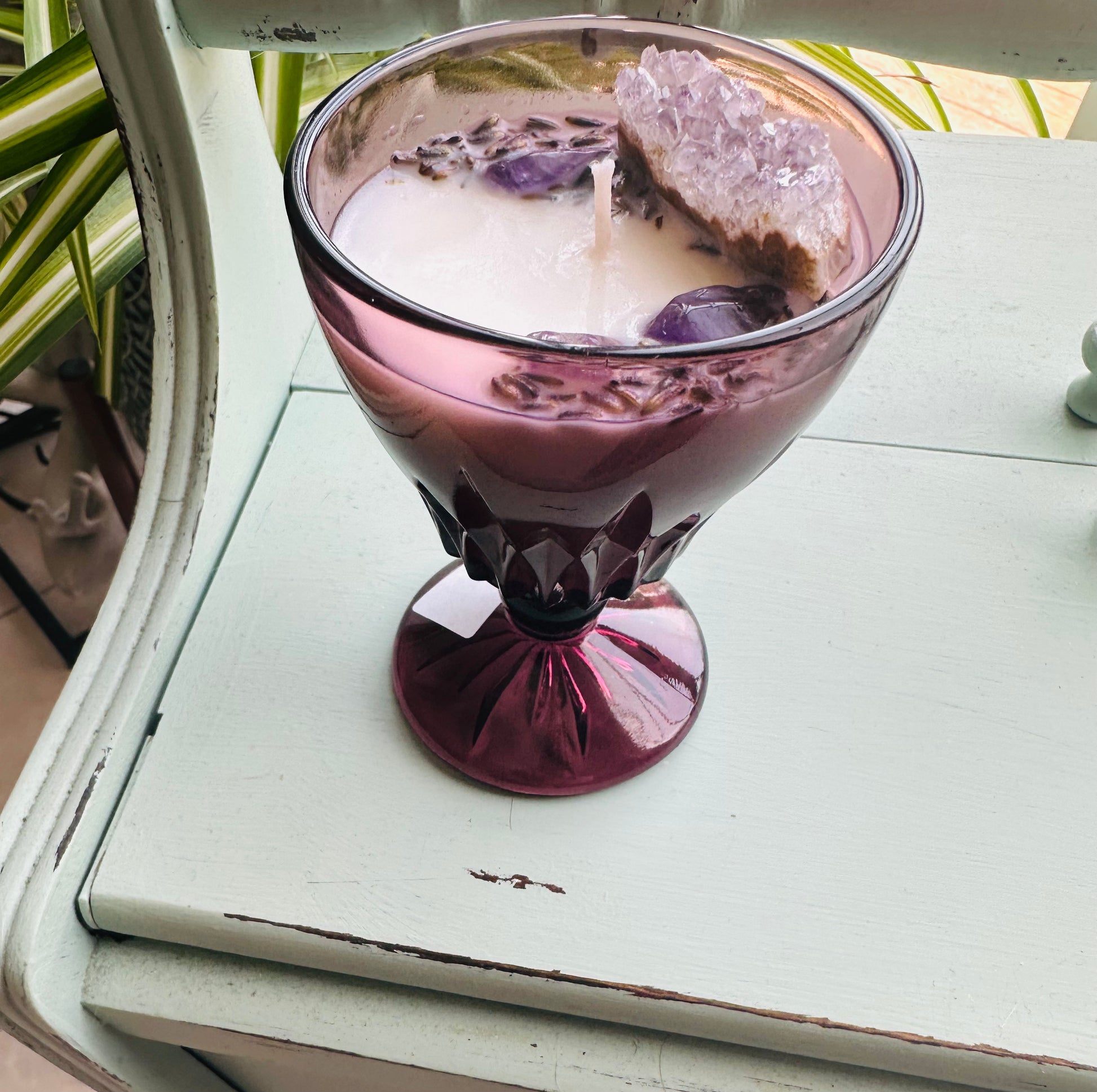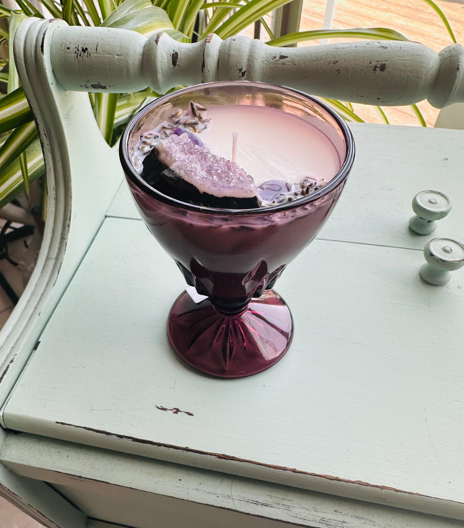 Hazel Atlas Moroccan Amethyst Wine Glass Gemstone Candle