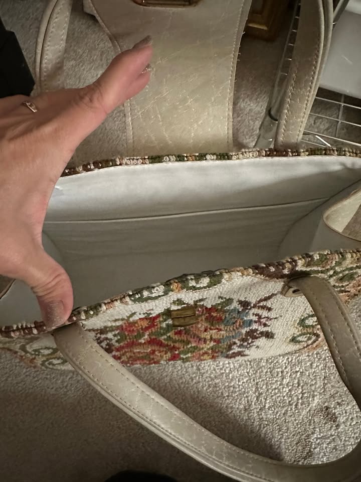 2. Vintage floral tapestry handbag 11x12 in excellent used condition with purse feet and an inside pocket.