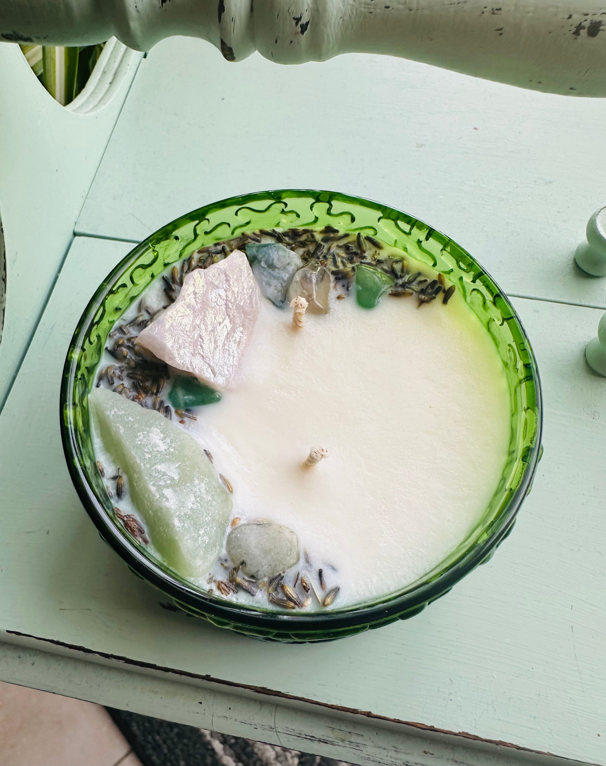 1. Aura Rose Quartz+Green Aventurine+chips+herbs