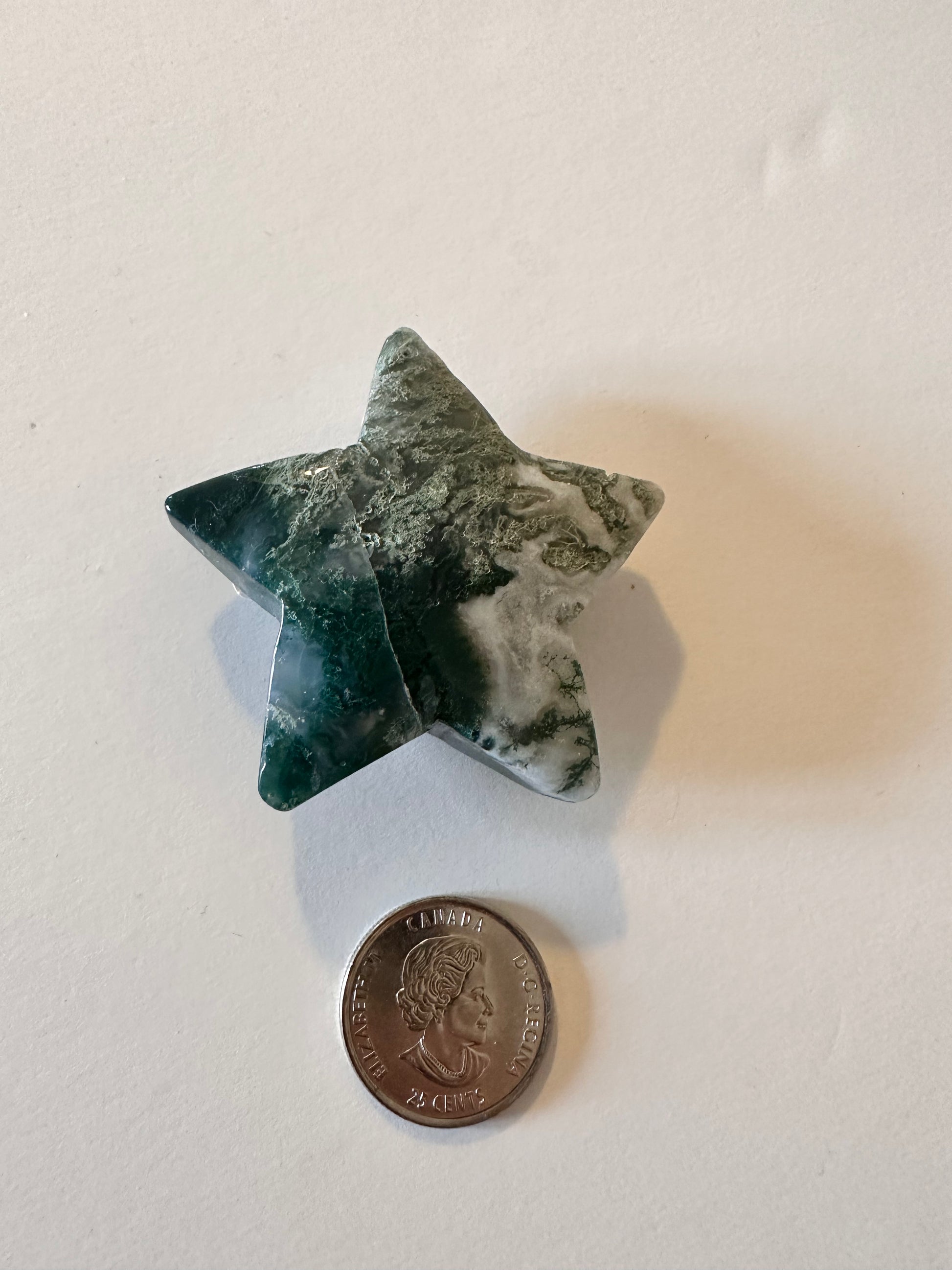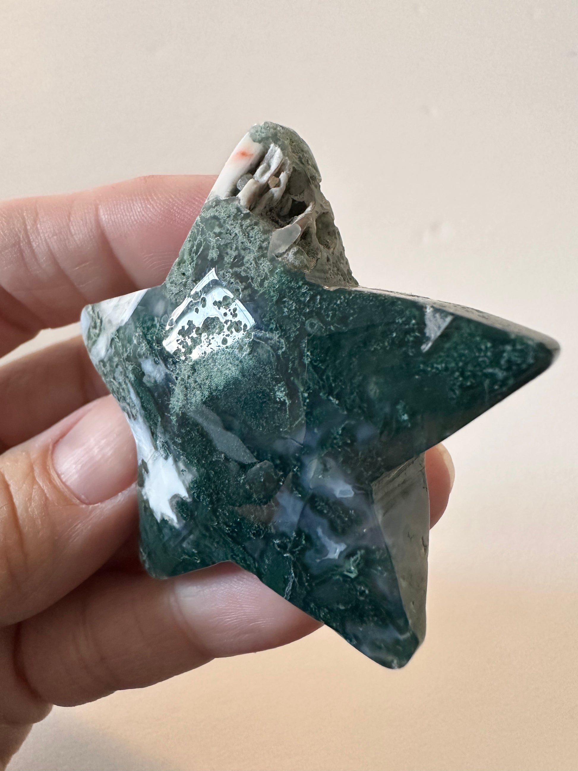 Moss Agate star with druzy approximate size is.5-2 inch.