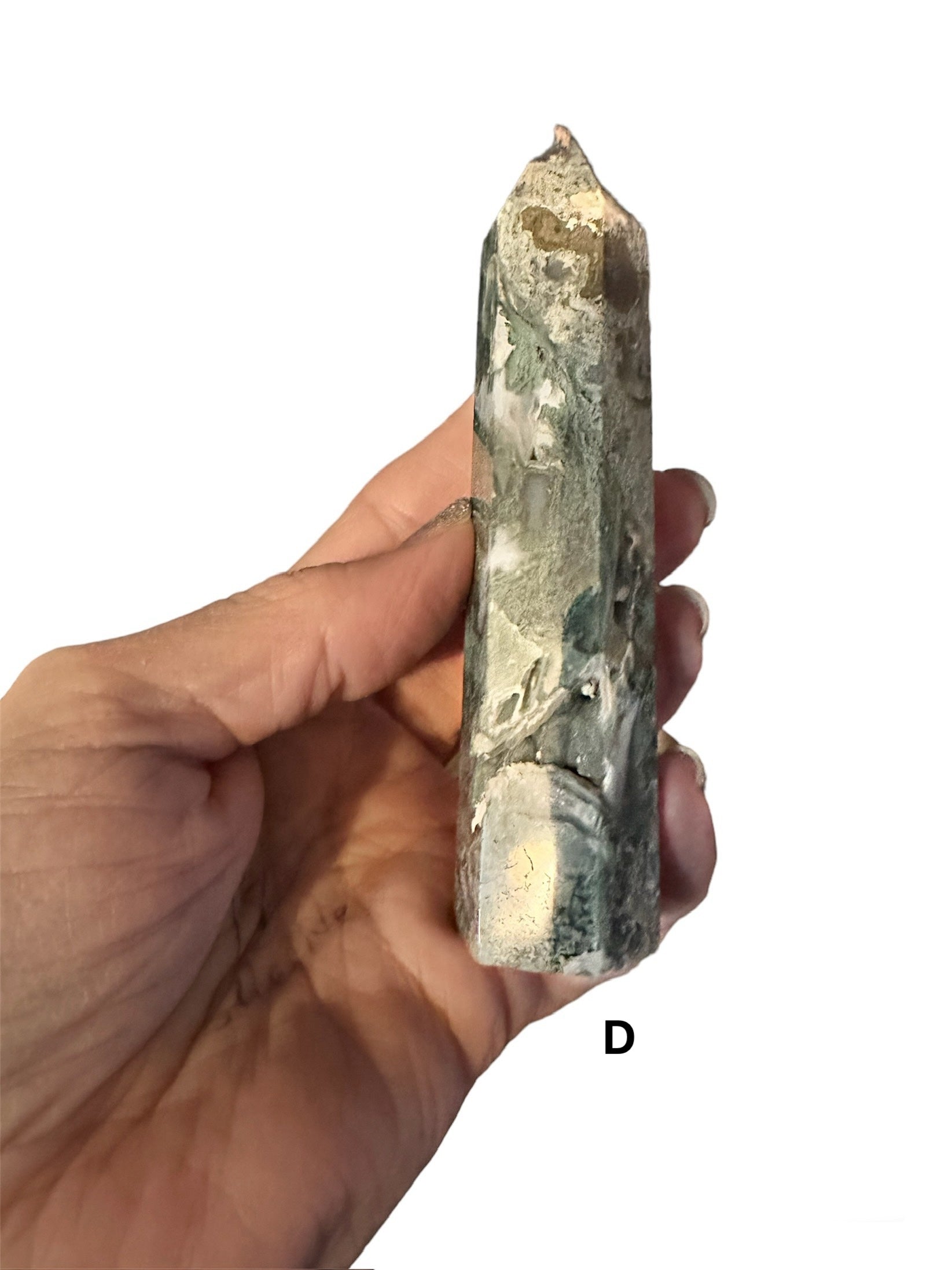 Moss Agate is a stone of abundance. Moss Agate is known for its benefits in agricultural pursuits and has been successful in promoting the growth of new crops. Planted in a pot or flower bed, it increases the overall health of plants. Moss Agate brings peace and stability to the emotional body. It is especially helpful to those who experience extreme mood swings and those addicted to emotional drama in their lives. It soothes volatile tempers and promotes patience, wholeness, and inner calm.