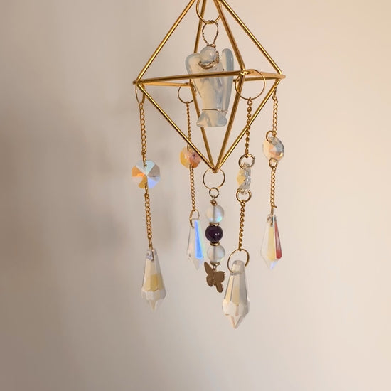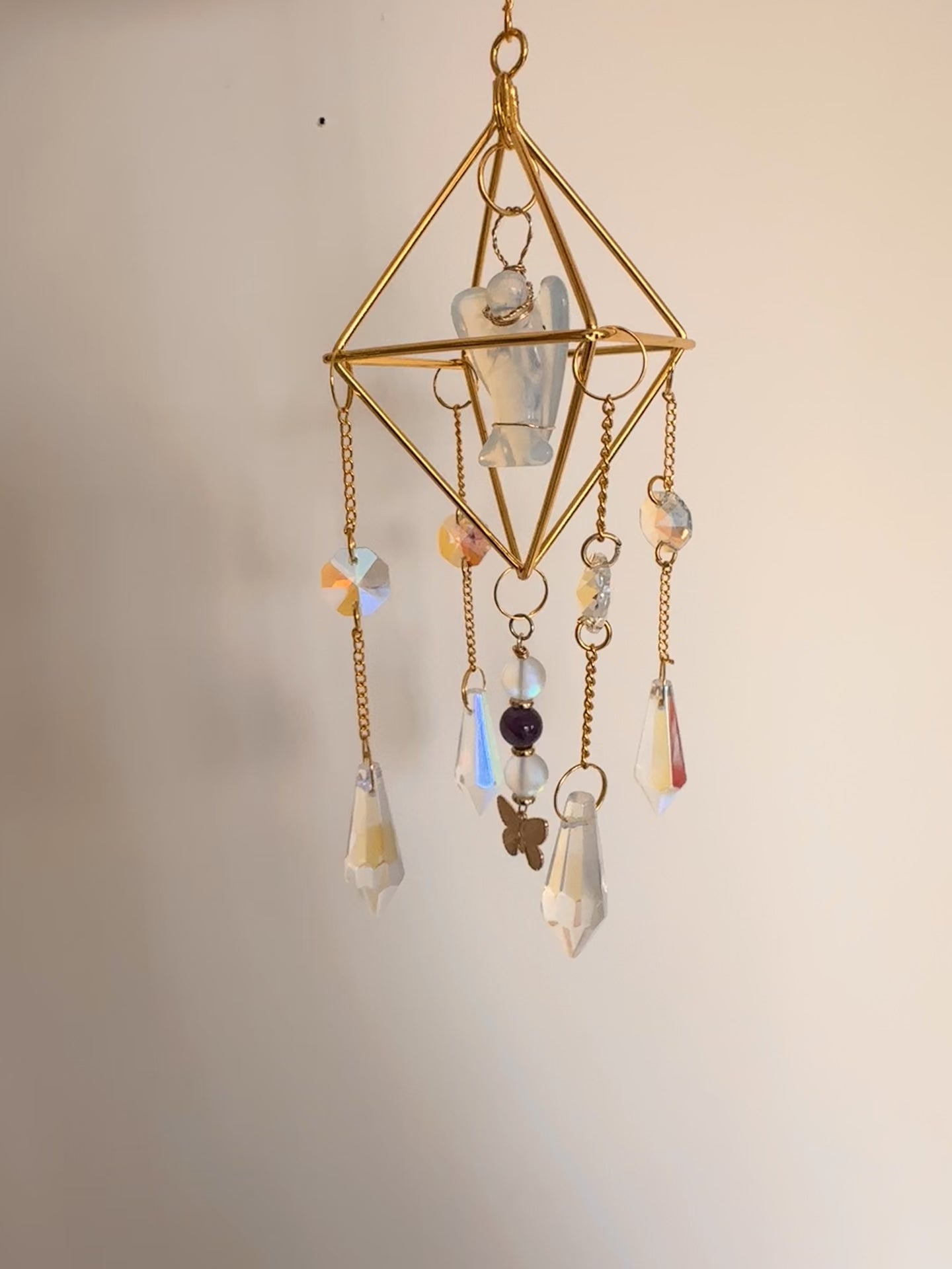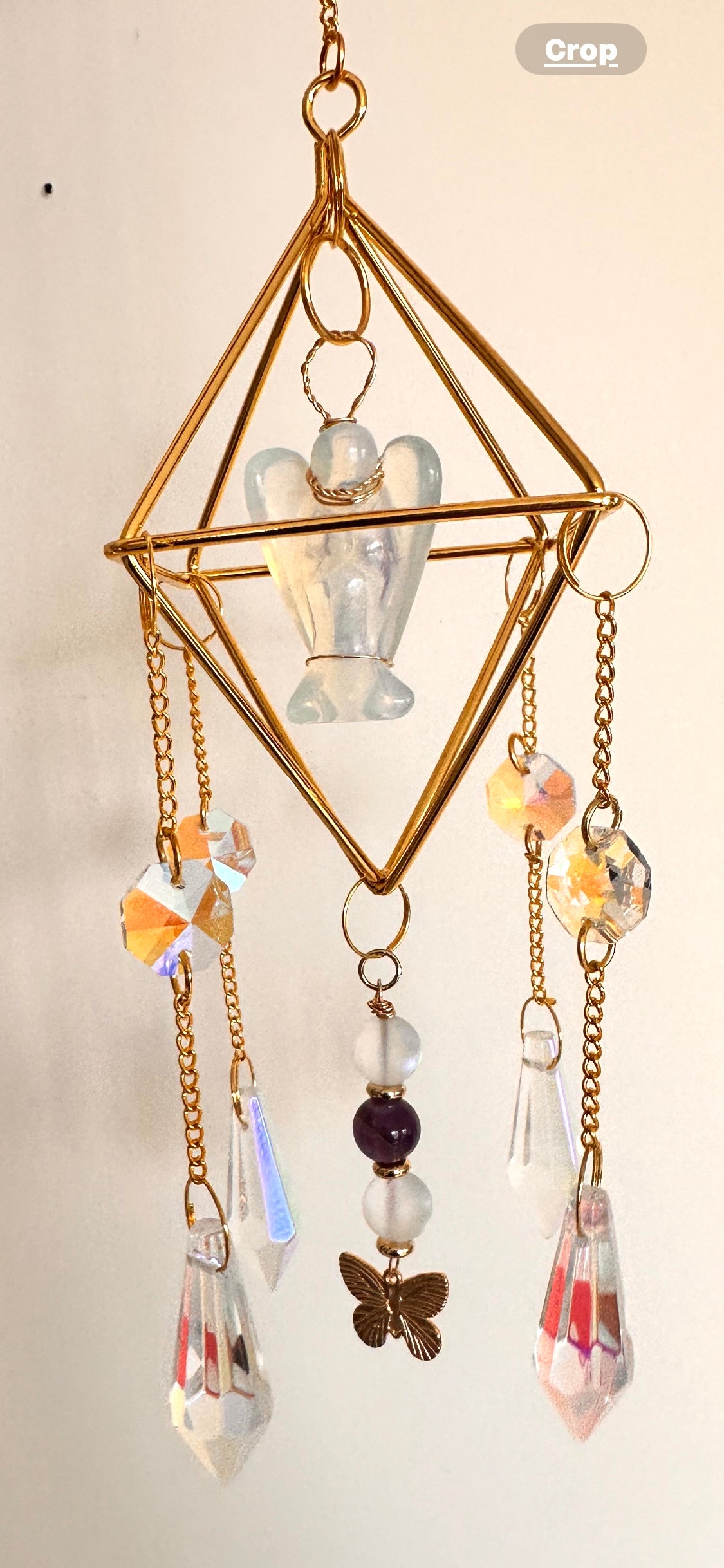 Opalite Angel Suncatcher measuring approx. 19 inches. The Opalite Angel is 1.3 inches