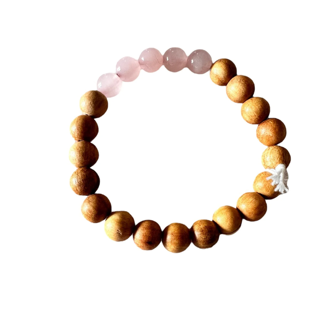 Palo Santo bracelet 9mm beads Palo Santo and 8mm beads Rose Quartz.