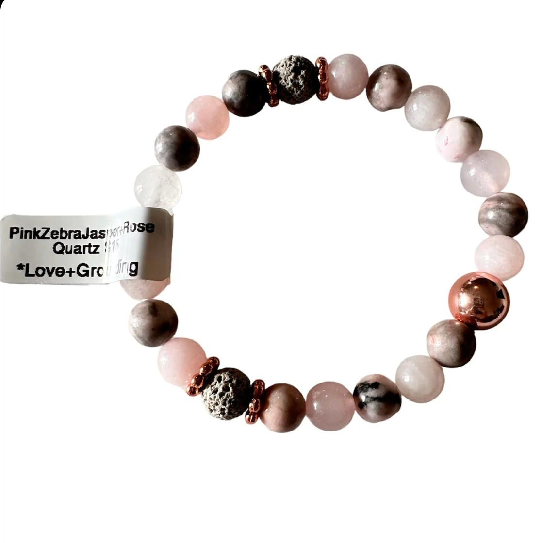 Looking for a stylish and unique bracelet that combines the healing properties of Pink Zebra Jasper, Rose Quartz, and Lava stones? Look no further than our exquisite Pink Zebra Jasper, Rose Quartz, and Lava bracelet. With its beautiful and eye-catching design, this bracelet is perfect for anyone who wants to add a touch of elegance and healing energy to their outfit. Order yours today and experience the power of these amazing stones! and Lava bracelet