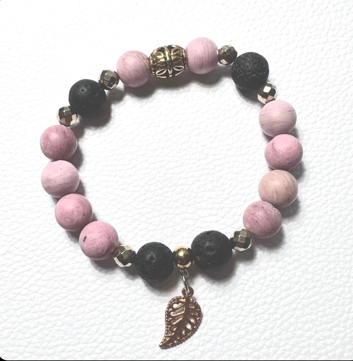 10mm Rhodonite, Lava Rock, and Hematite 10mm beaded bracelet with zinc alloy charms