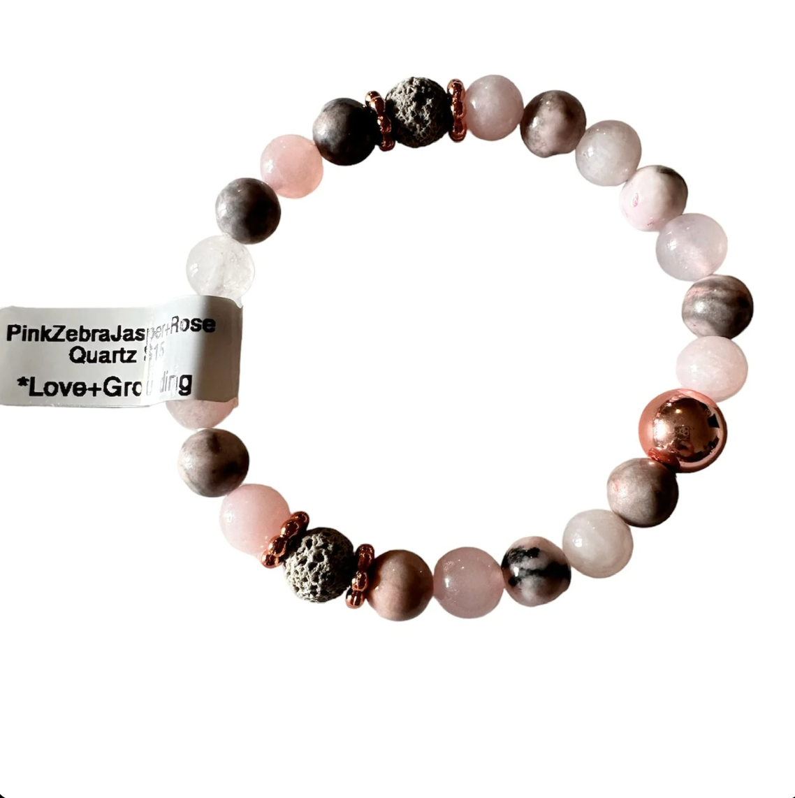 Rose Quartz, Pink Zebra Jasper, and Lava.