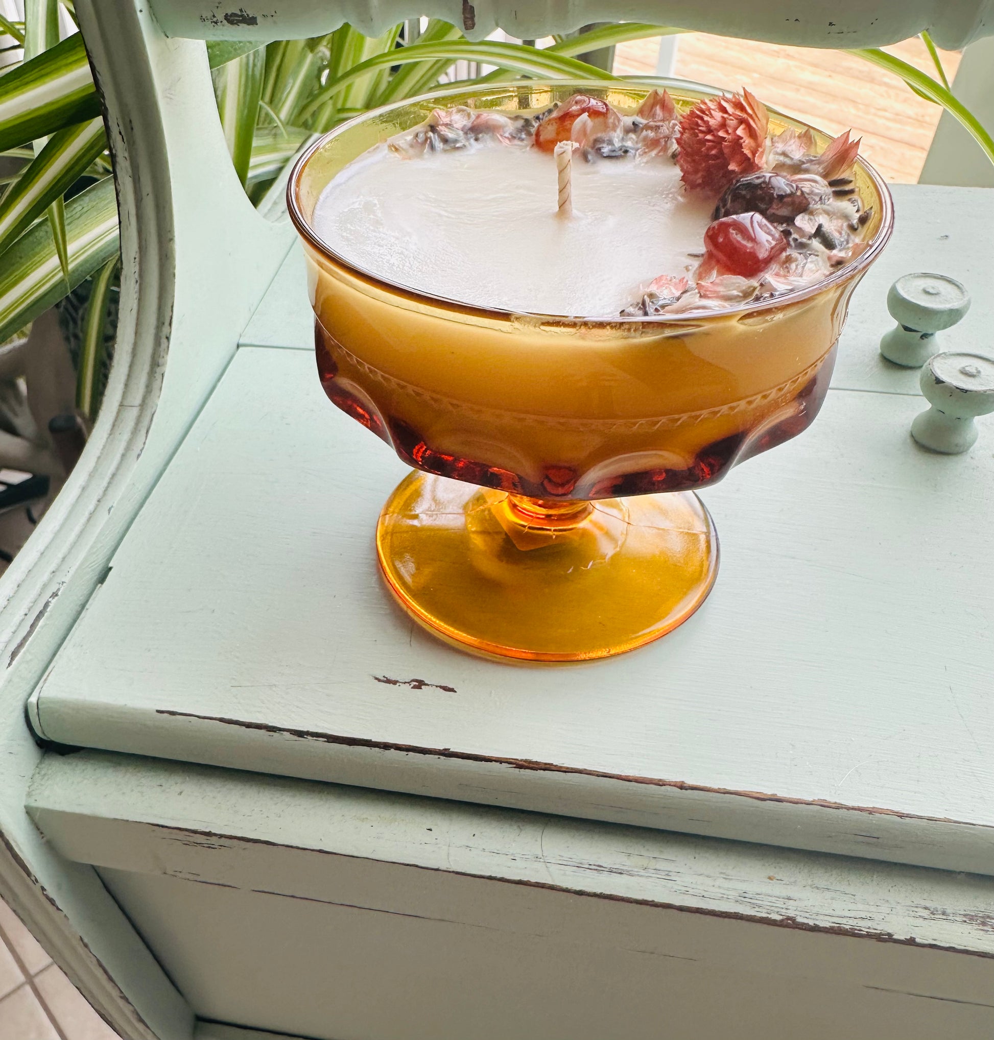 Vintage Amber Indiana Glass Gemstone Candle