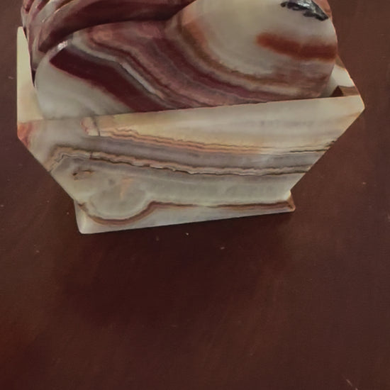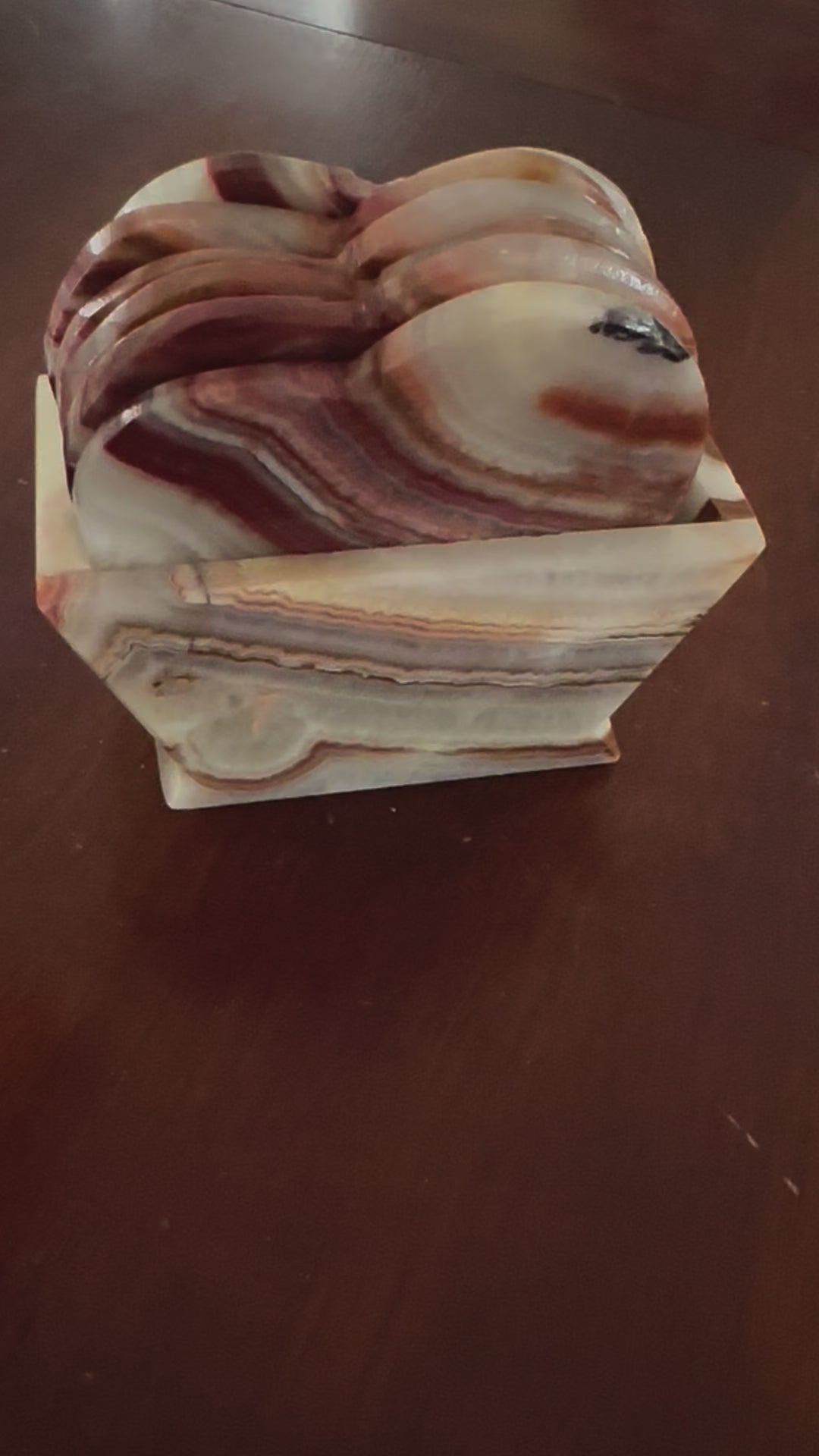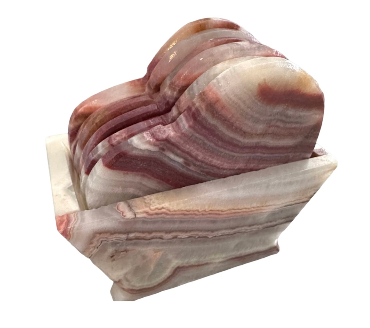 Vintage Banded Calcite heart shaped coaster set (6 coasters)