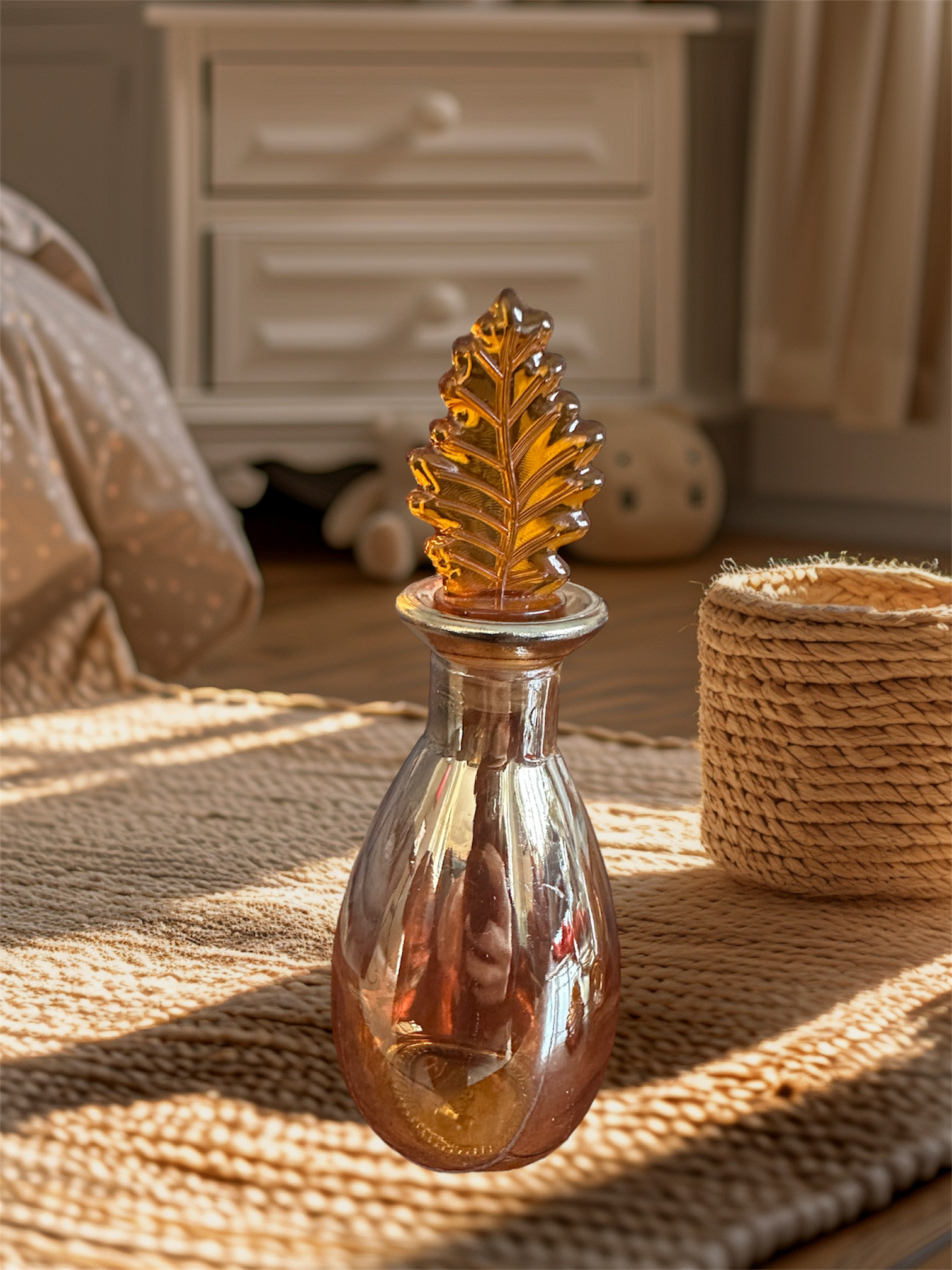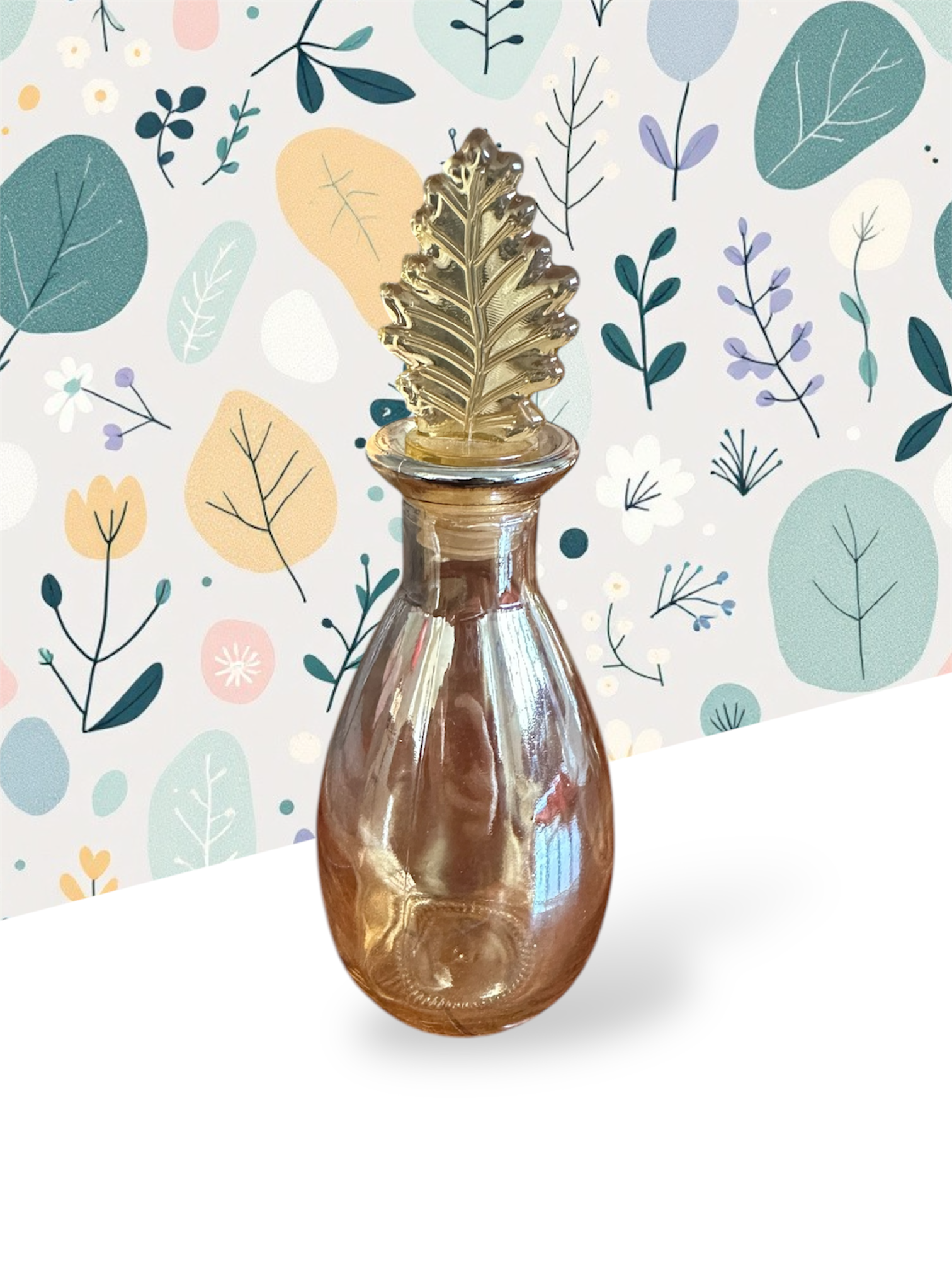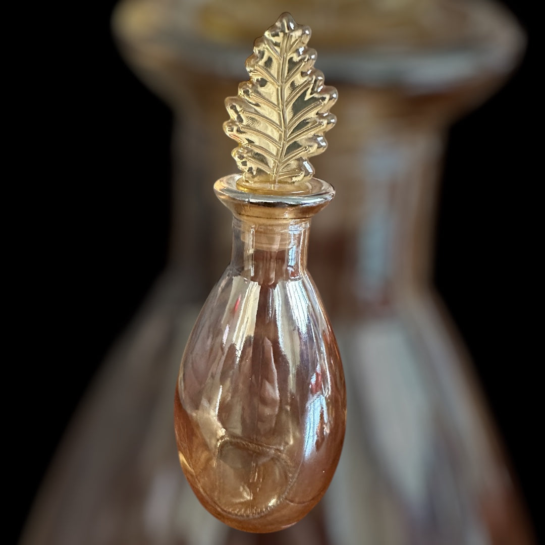 Vintage Glass Potion Bottle Leaf Top Iridescent Amber - Witchcraft, Cosplay, Potions, Moon Water, Potions.