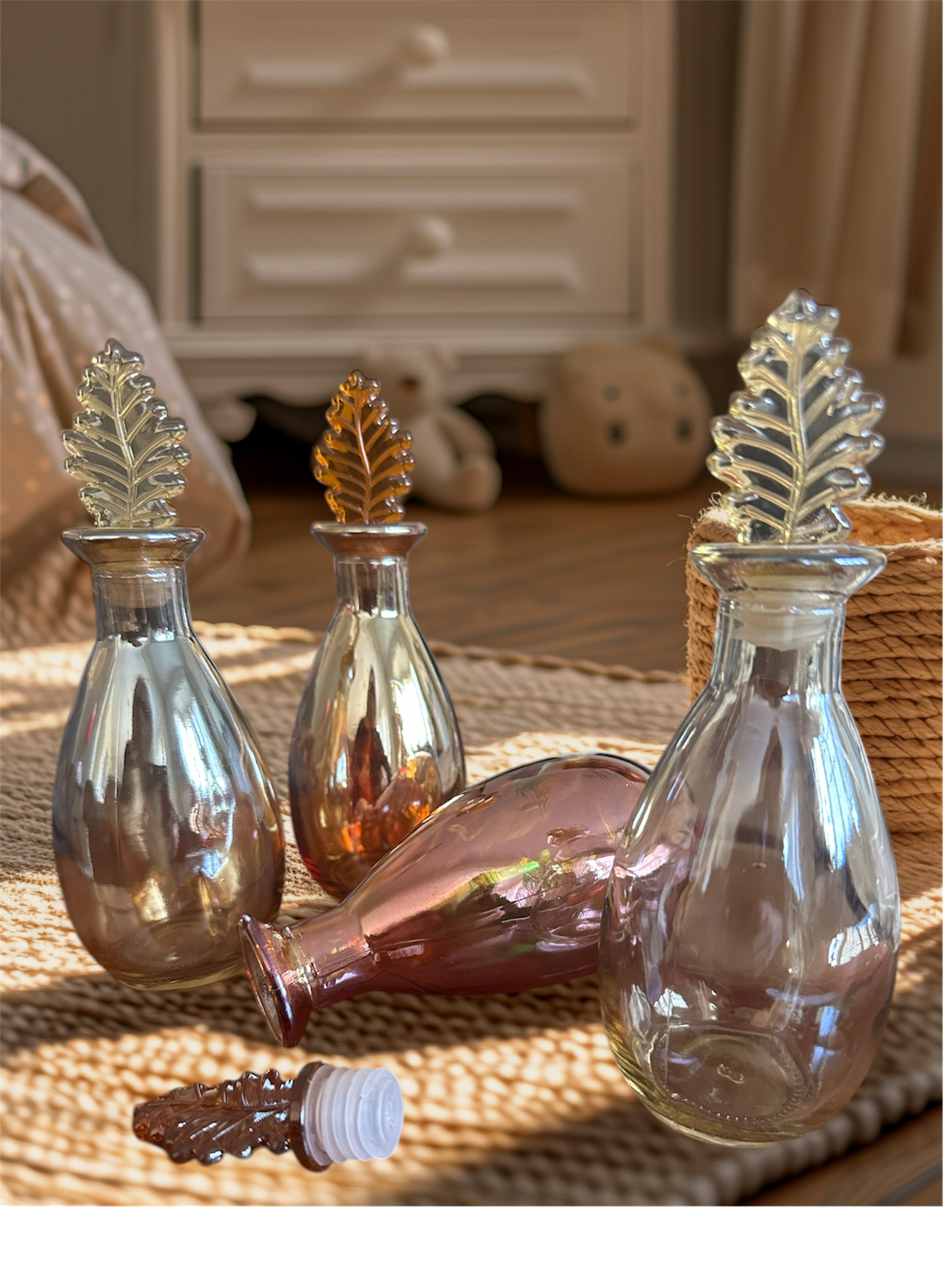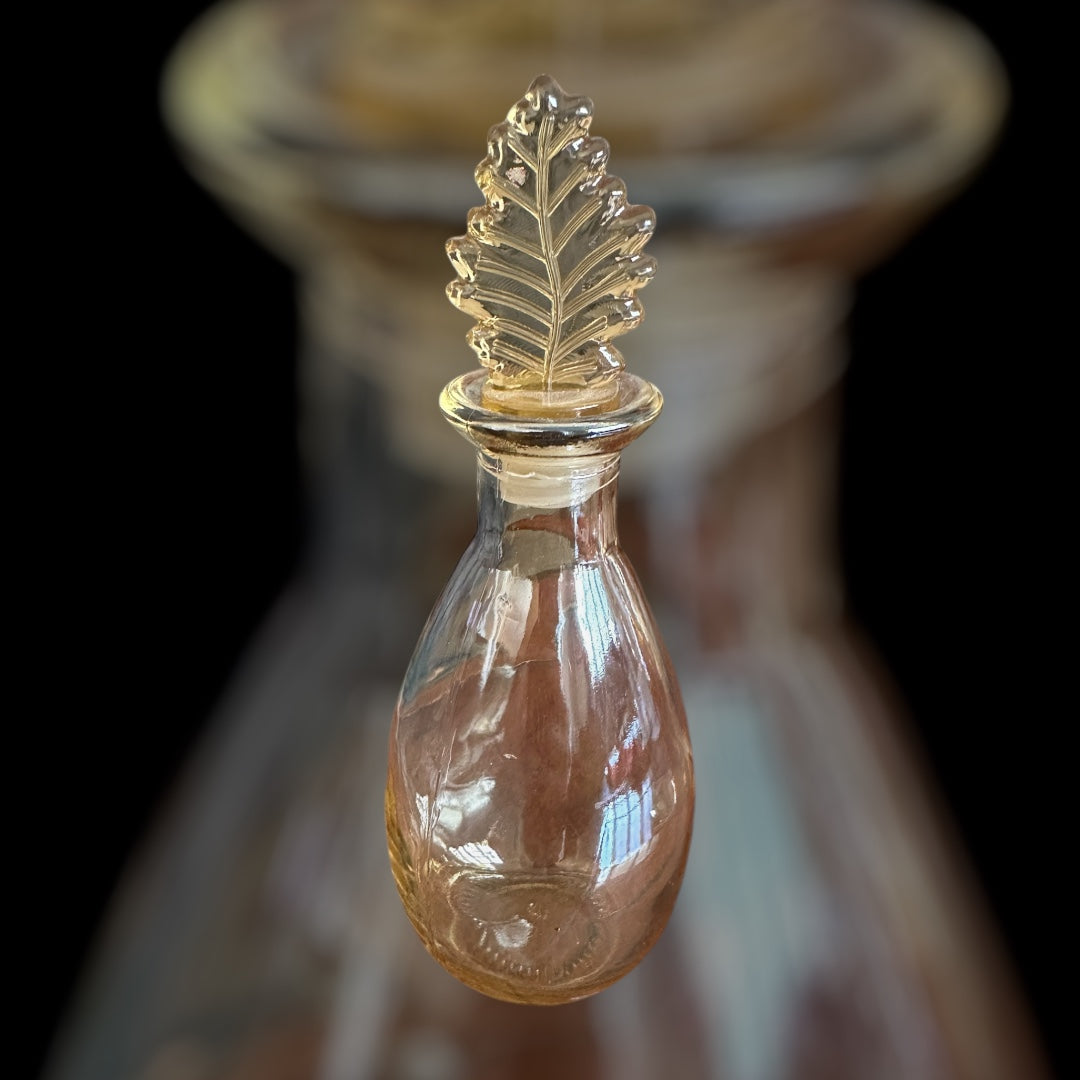 Vintage Glass Potion Bottle Leaf Top Iridescent
