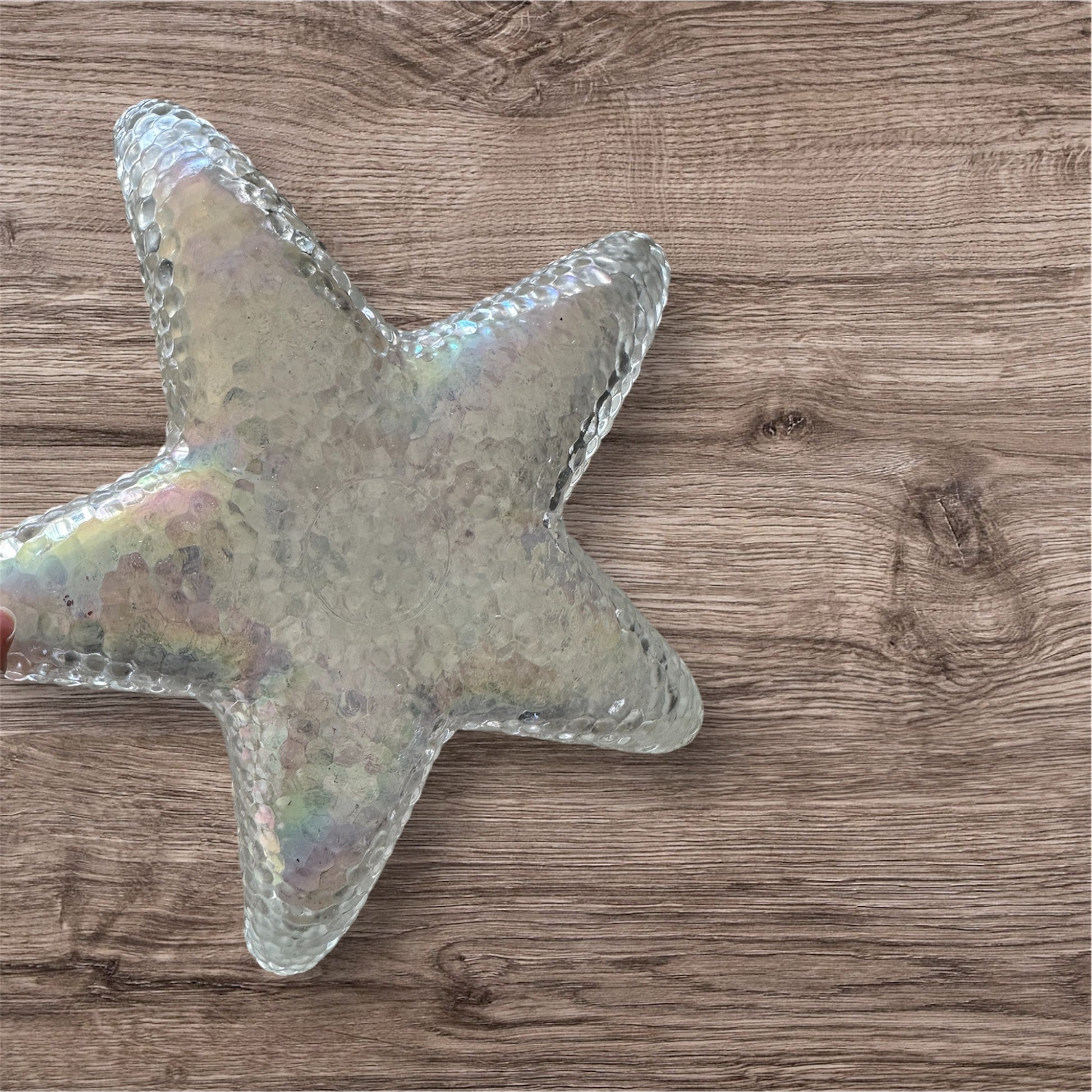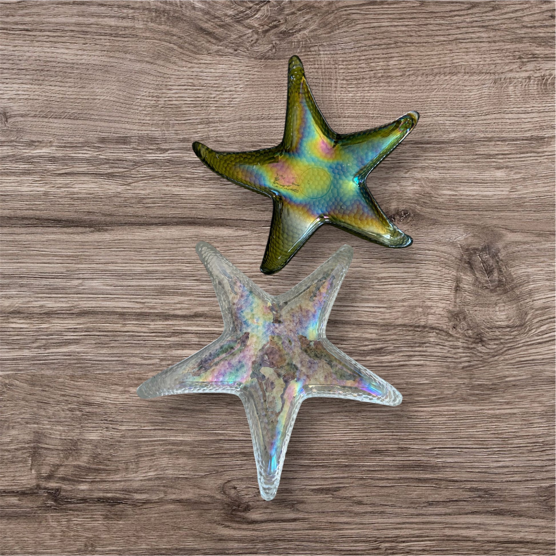Vintage Glass Starfish Bowl Green 10.5" Pebbled Bottom Ocean Tropical Coastal Beach Theme Party Snack Serving Bowl Trinket Key Dish Catchall.
