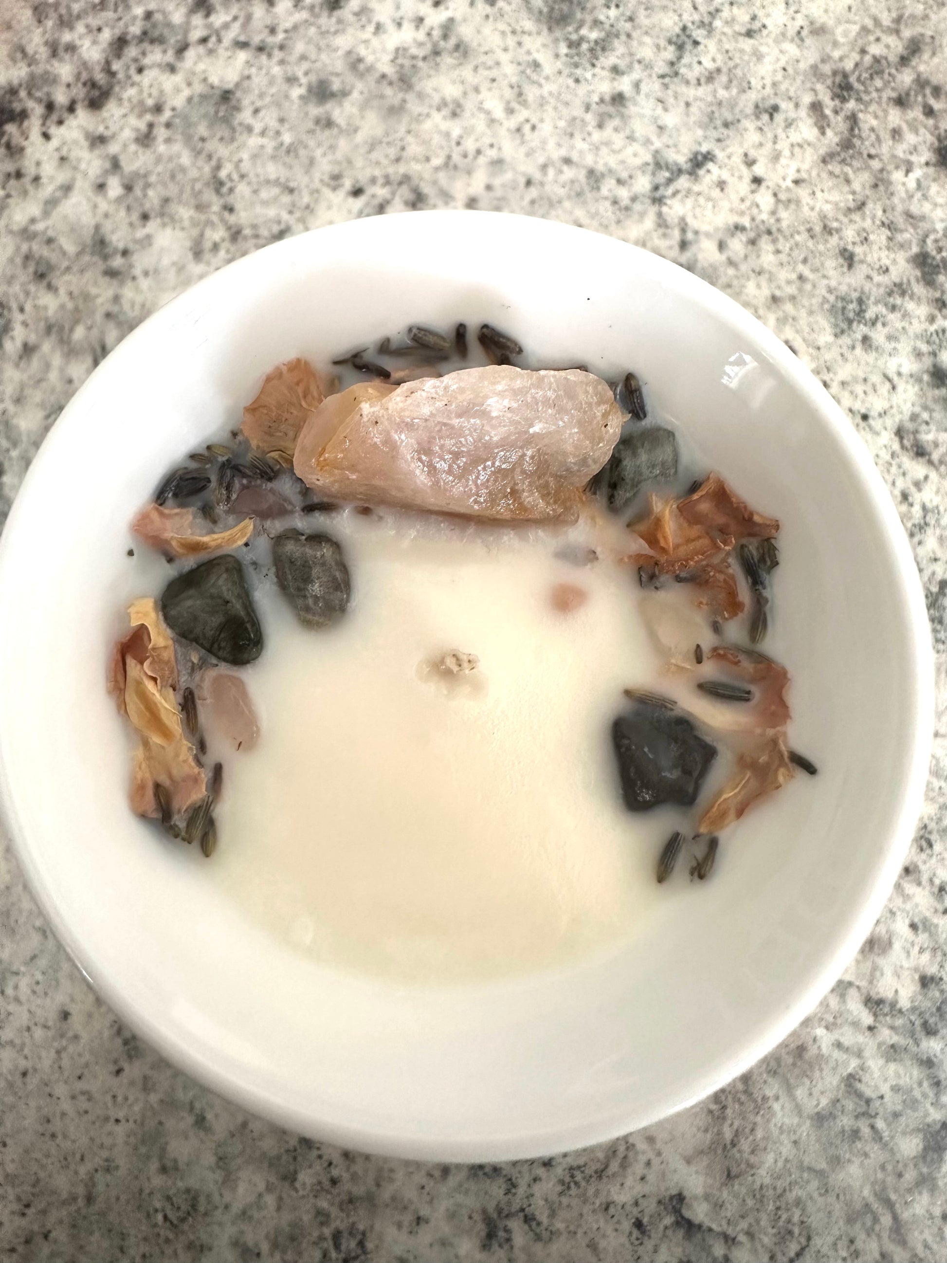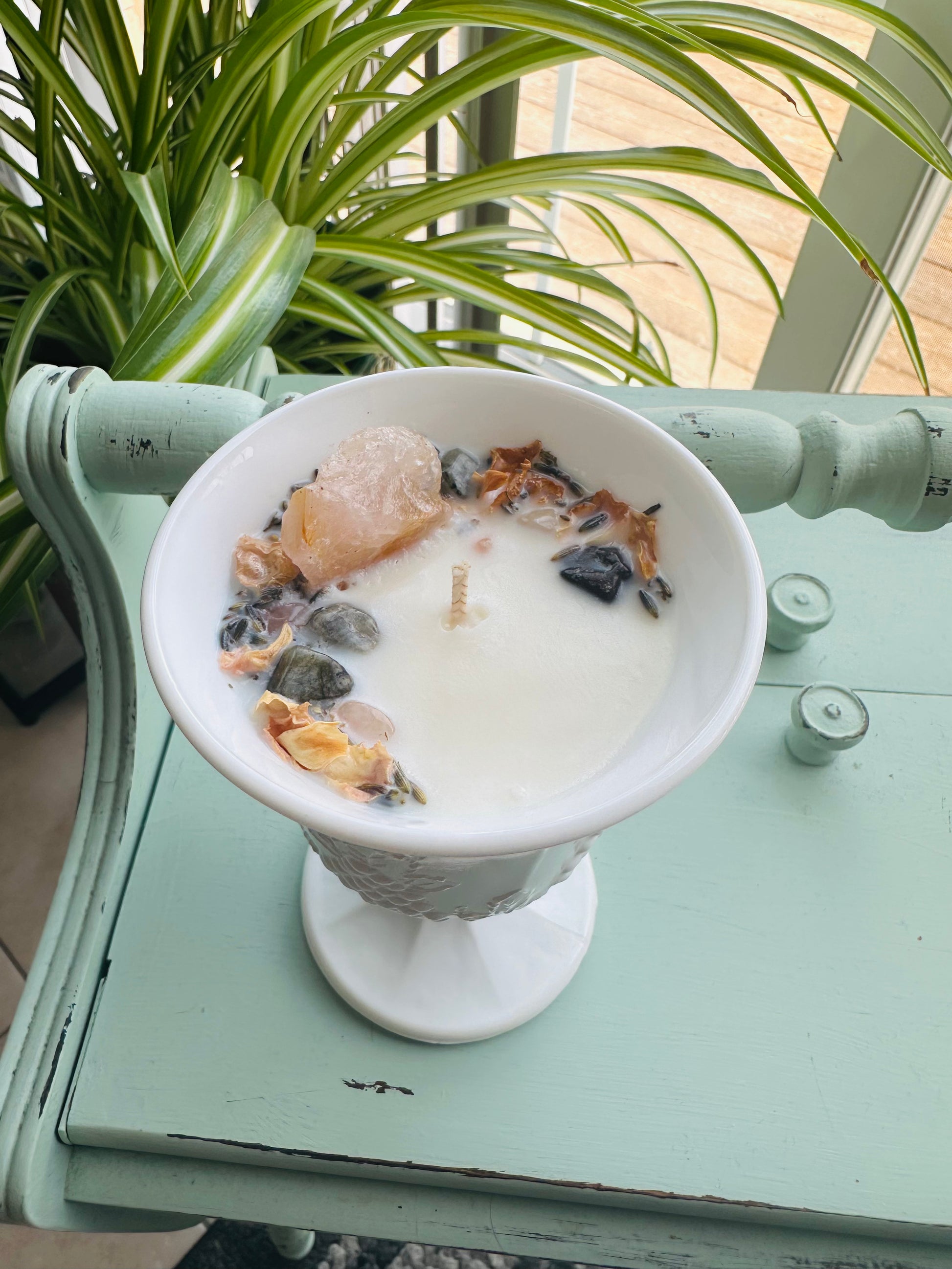 Lavender and vanilla scent+Rose Quartz+chips+herbs